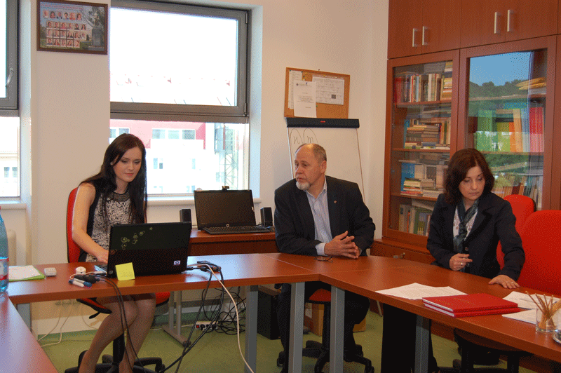 • Свою презентацію на державнім екзаменї на ІРЯК ПУ успішно зробила: (злїва) Бк. Я. Ріґанова за притомности екзамінуючіх В. Падяка і К. Копоровой.